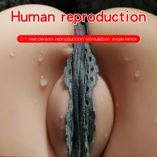 Premium Silicone Double Channels Male Masturbator - Realistic Vagina & Anal