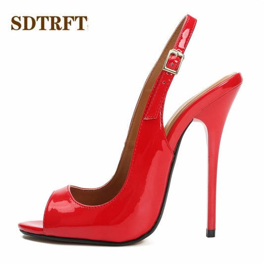 Summer Glam: Sexy Sandals for Crossdressers - Plus Size 44-48, 16cm Thin Heels, Open Toe Patent Leather Pumps