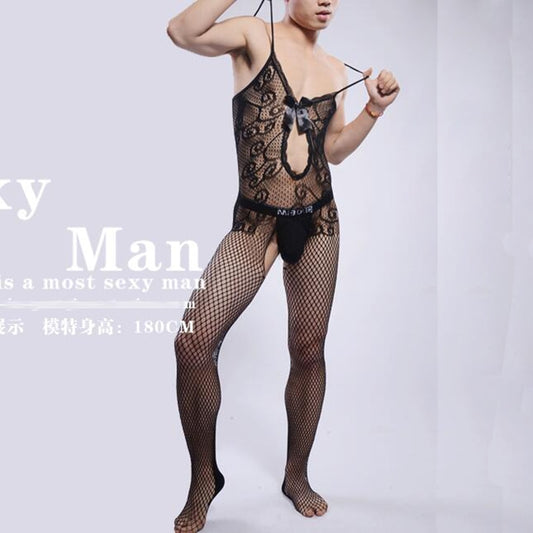 Erotic Stockings Jumpsuit - Ultra-Thin, Transparent, and Sexy Lingerie for Men.