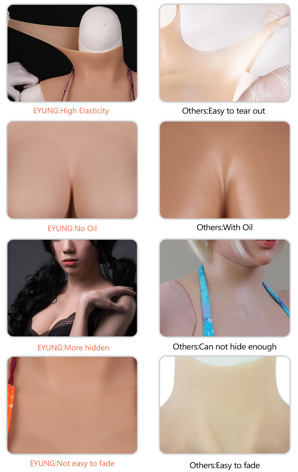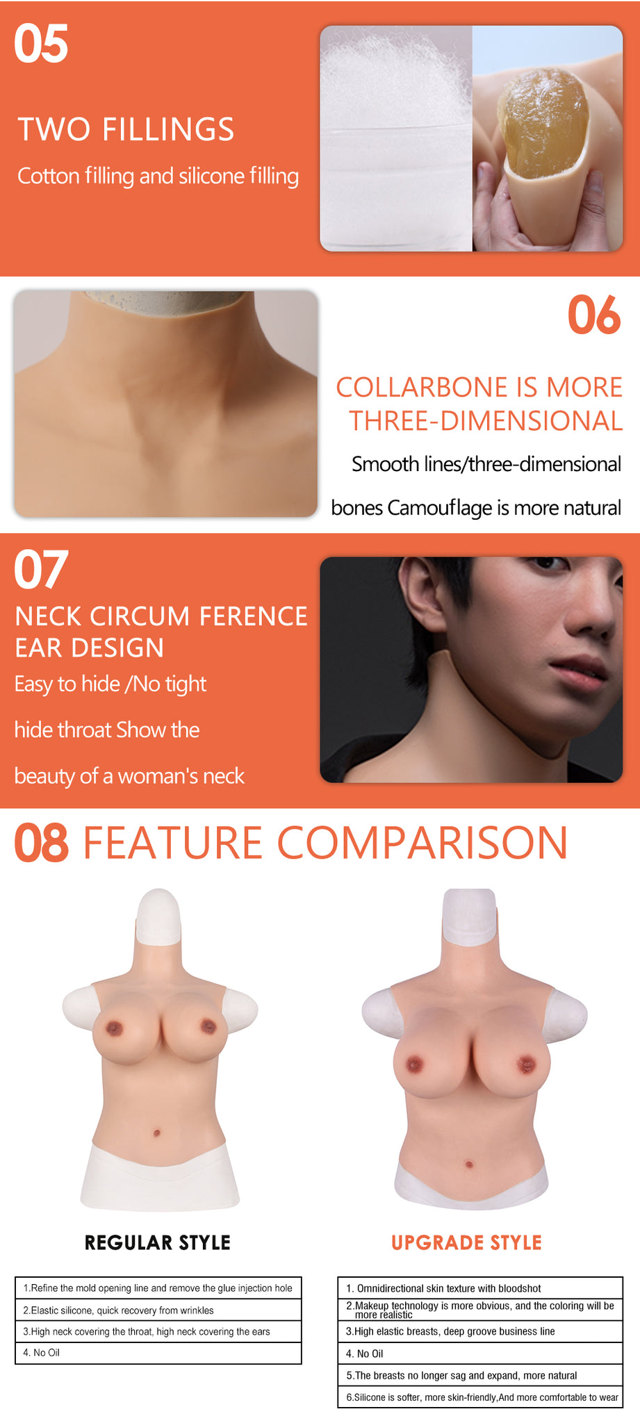 Reach a stunningly realistic look with our 5th generation no-oil silicone breast forms. They're made from 100% medical grade silicone for a natural, lightweight feel with the fullness of a full body form. Enjoy huge, no-oil breasts without the risk of leakage.