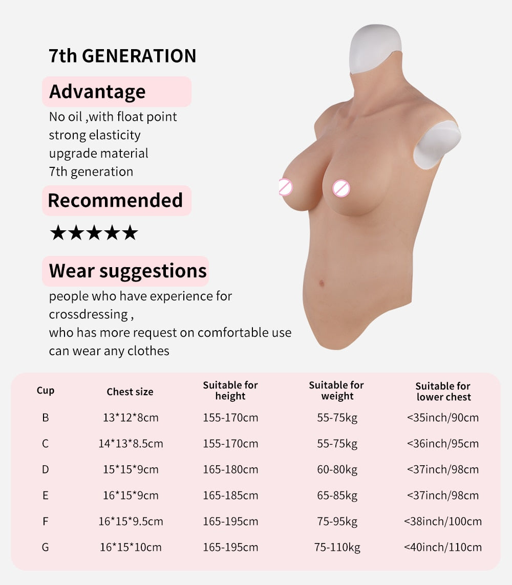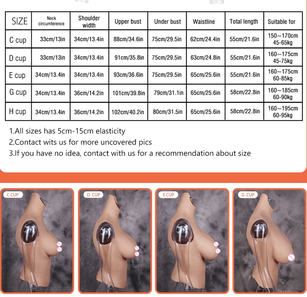 Oil-Free Silicone Breast Plate for Crossdressers and Transgender Women - H Cup Size, Natural Look