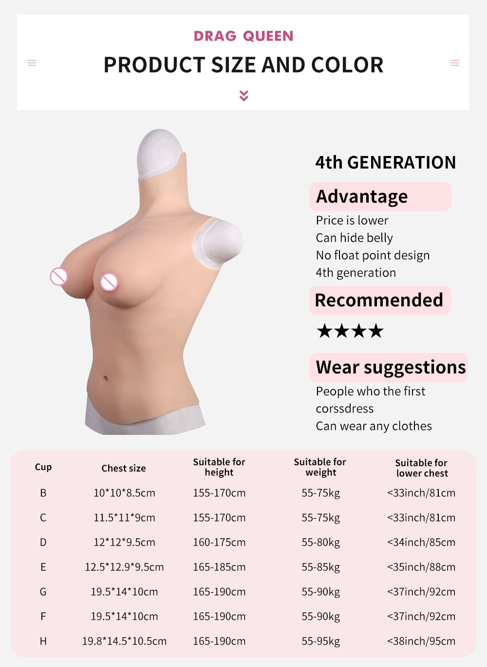 Upgrade your style to Zero Two level with our No Oil Fake Boobs Silicone Breast Plate! Experience the transformation from ordinary to extraordinary as you embrace the confidence of H-Cup curves. Get ready to captivate hearts and bust some moves with the allure of a goddess!