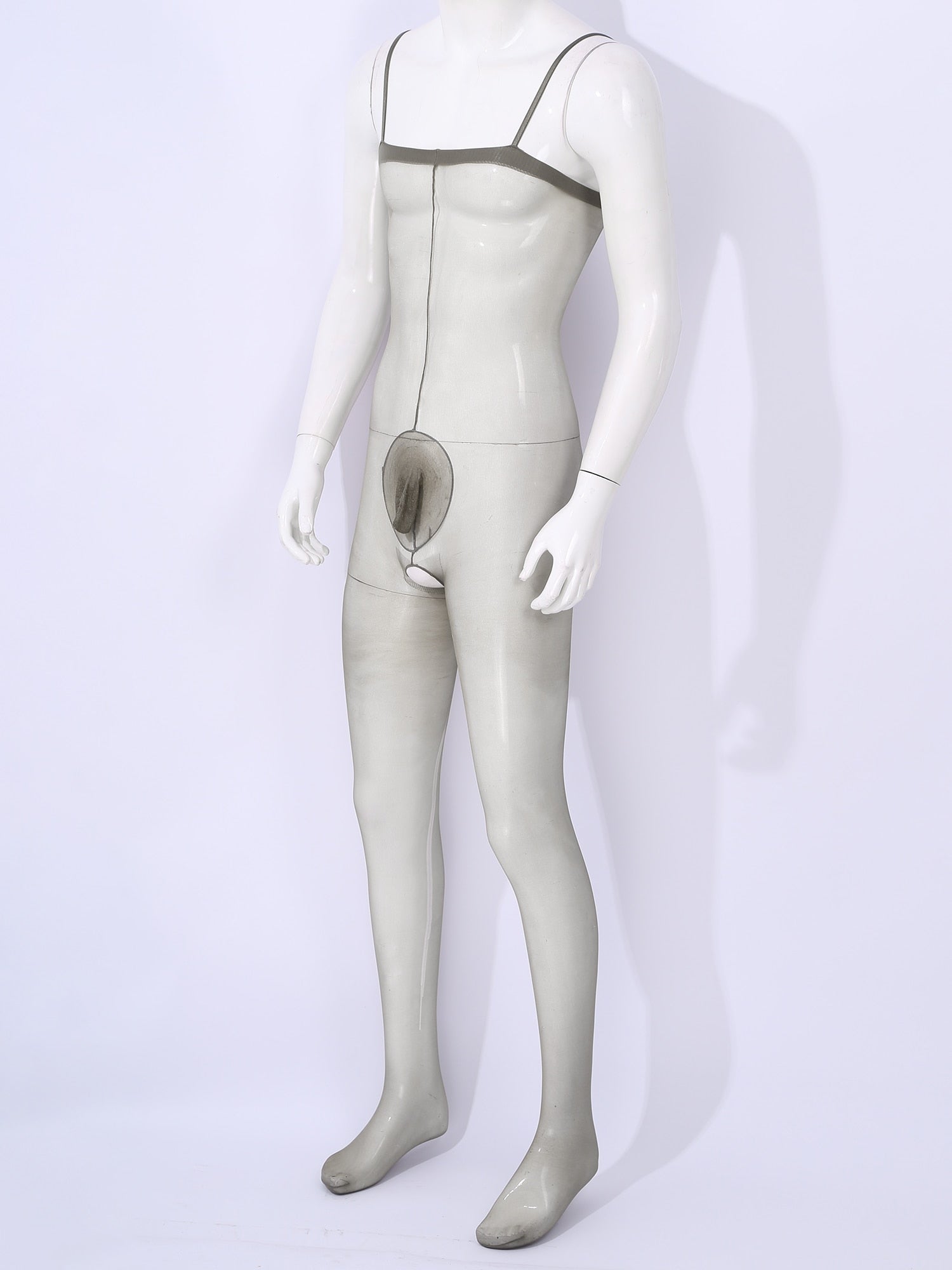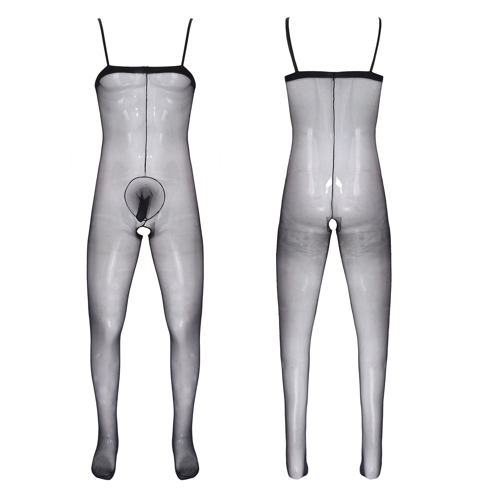 Mens One-piece See-through Bodysuit Crotchless Bulge Pouch Body Stocking.