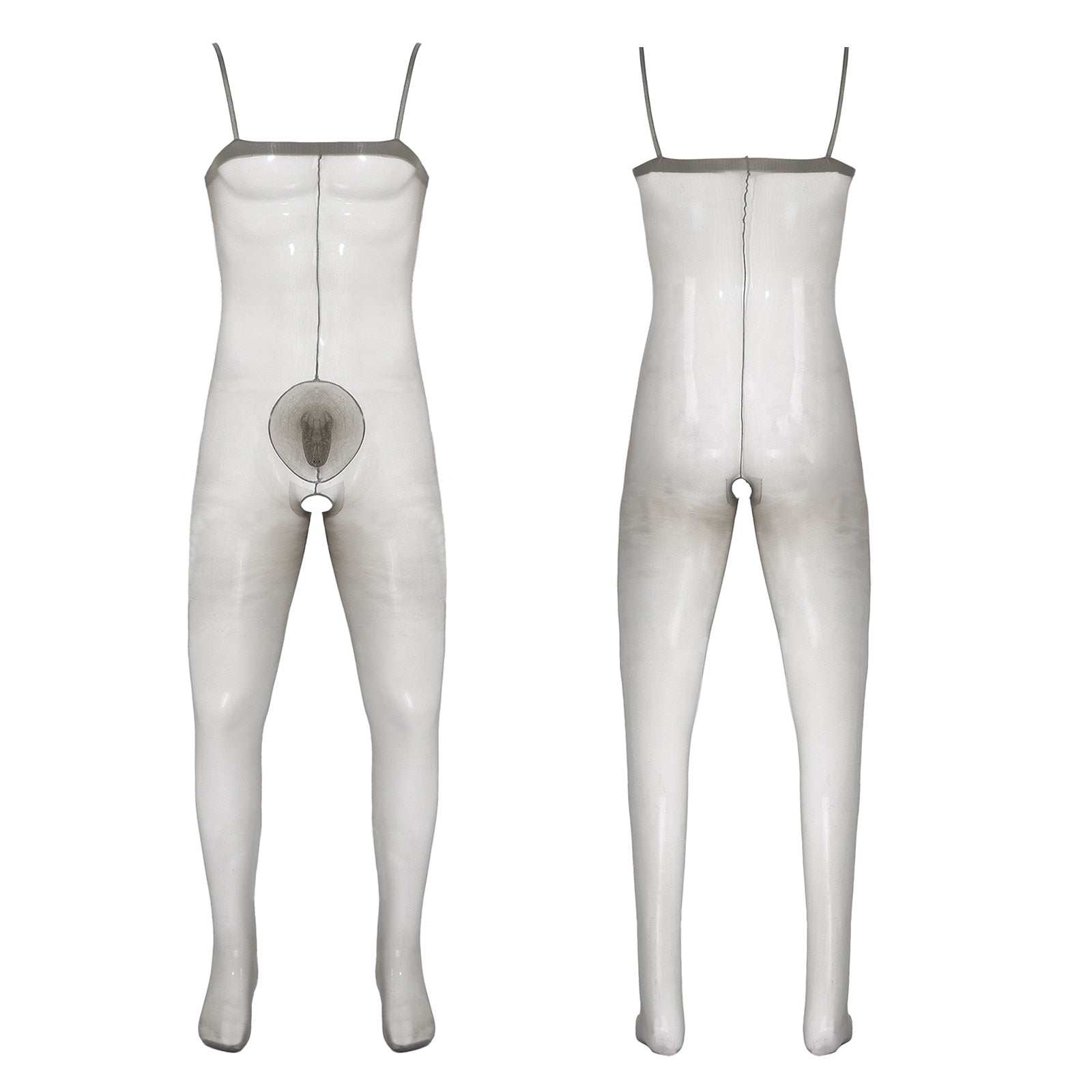 Mens One-piece See-through Bodysuit Crotchless Bulge Pouch Body Stocking.