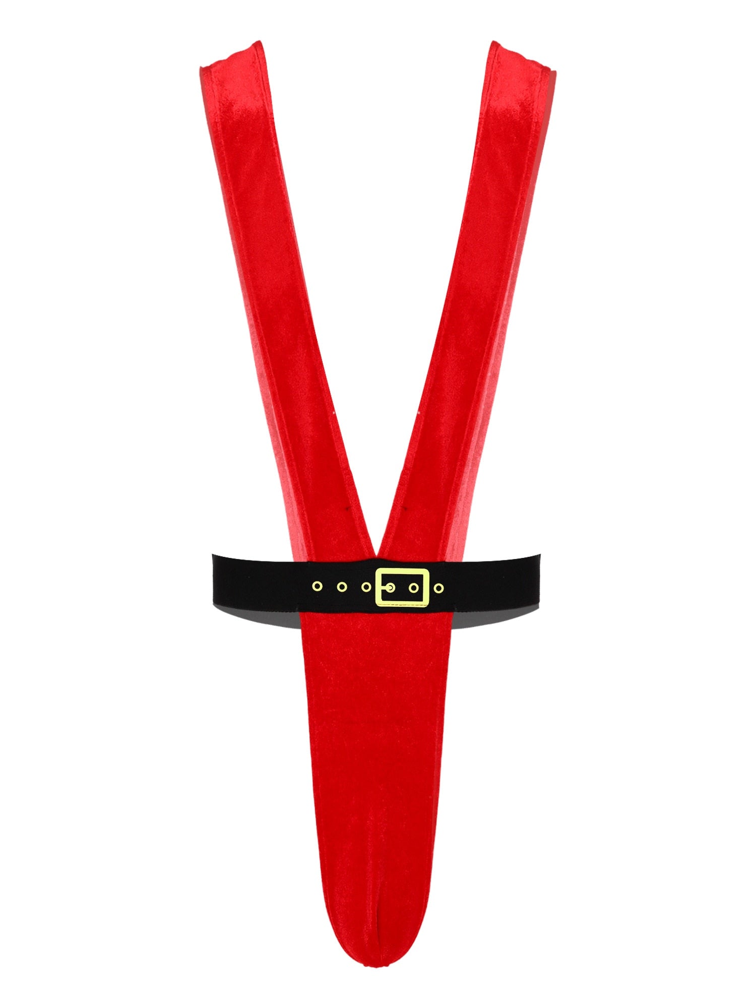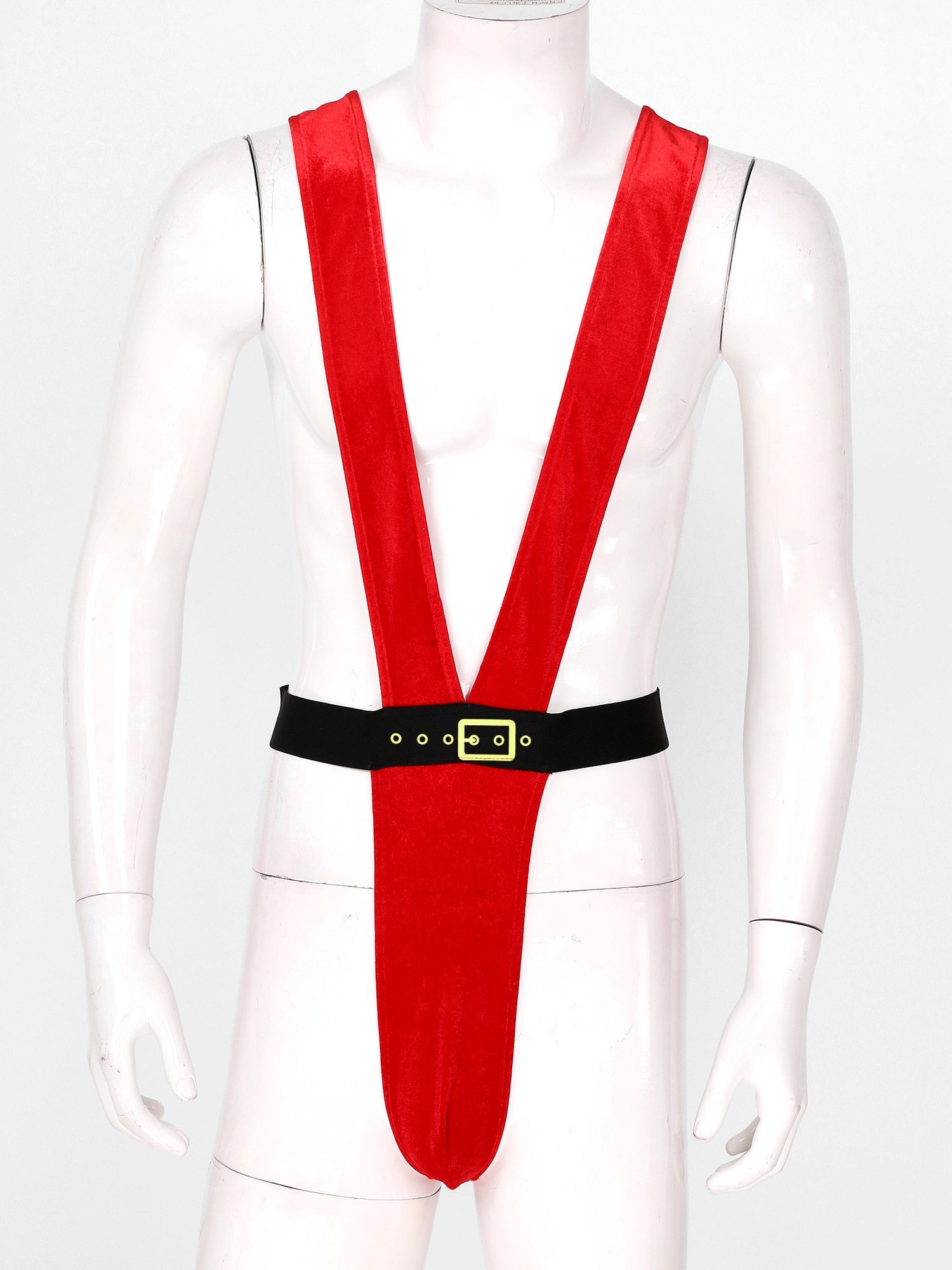 Men Deep V Velvet Mankini High Cut Elastic Waist Bodysuit Christmas Costume for Dating Night.