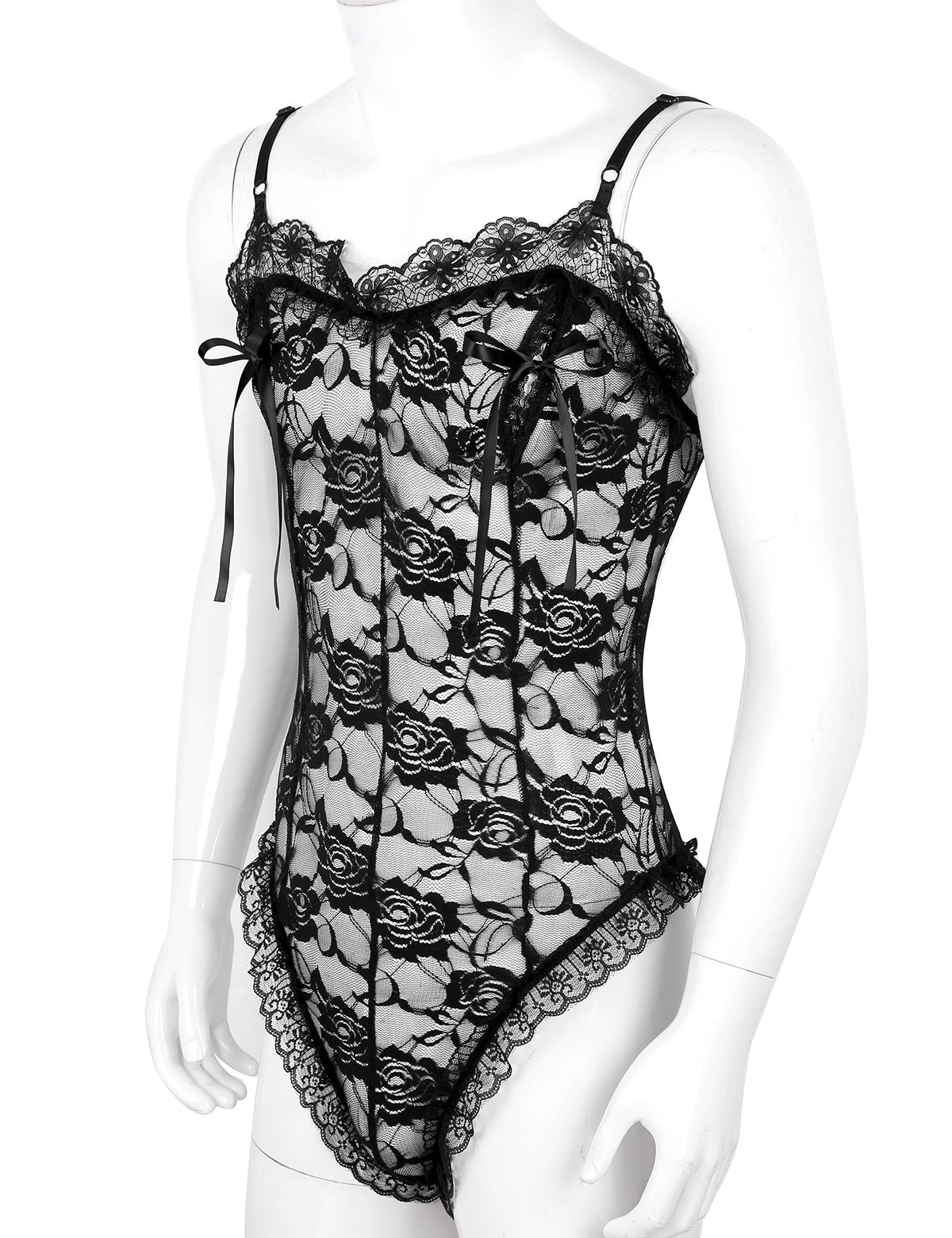 Model Number: Men Black Floral Lace Sissy Lingerie Bodysuit