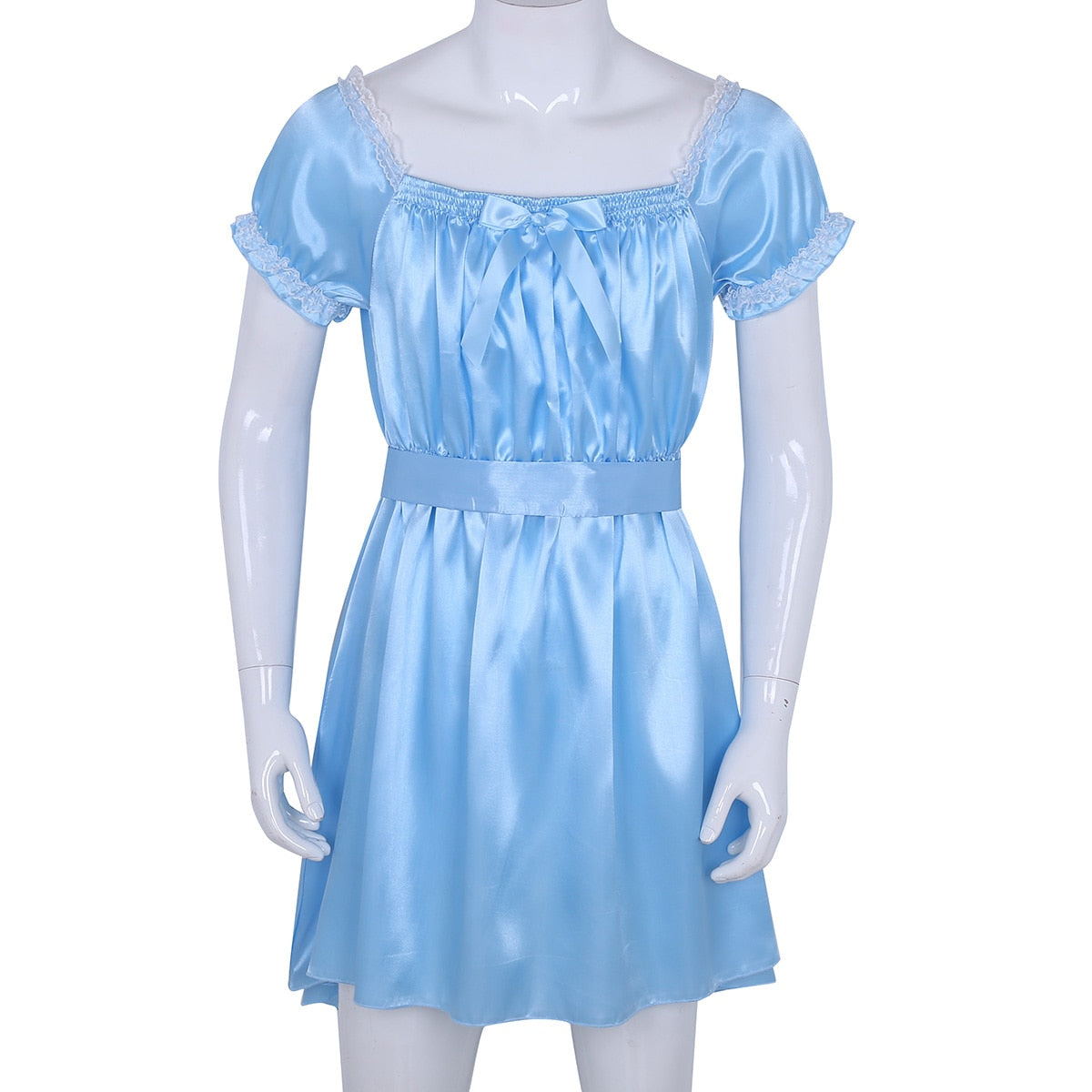 Men’s shiny satin crossdress lingerie dress underwear, pull on closure.