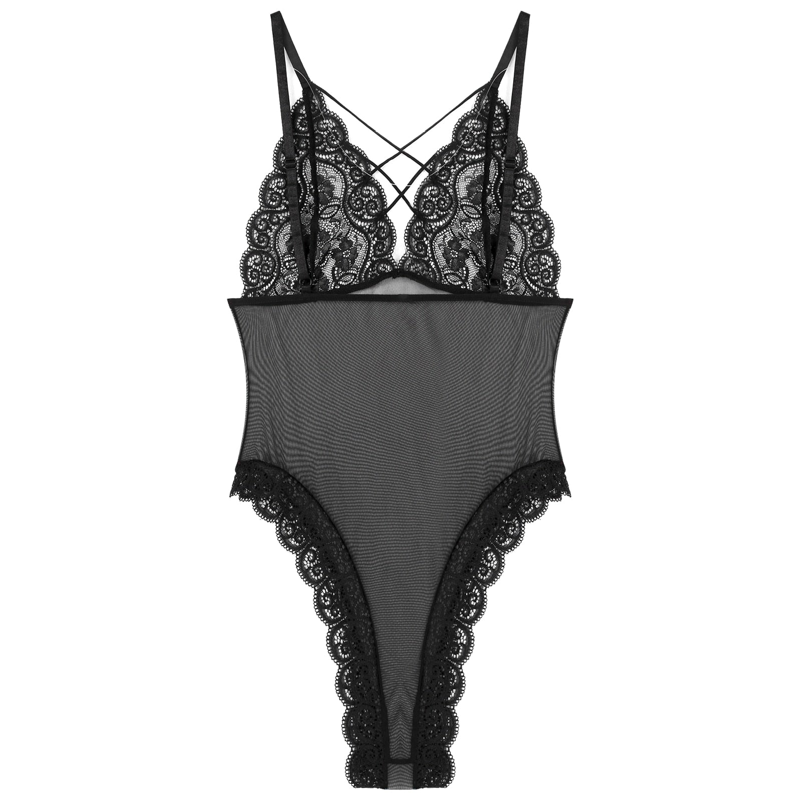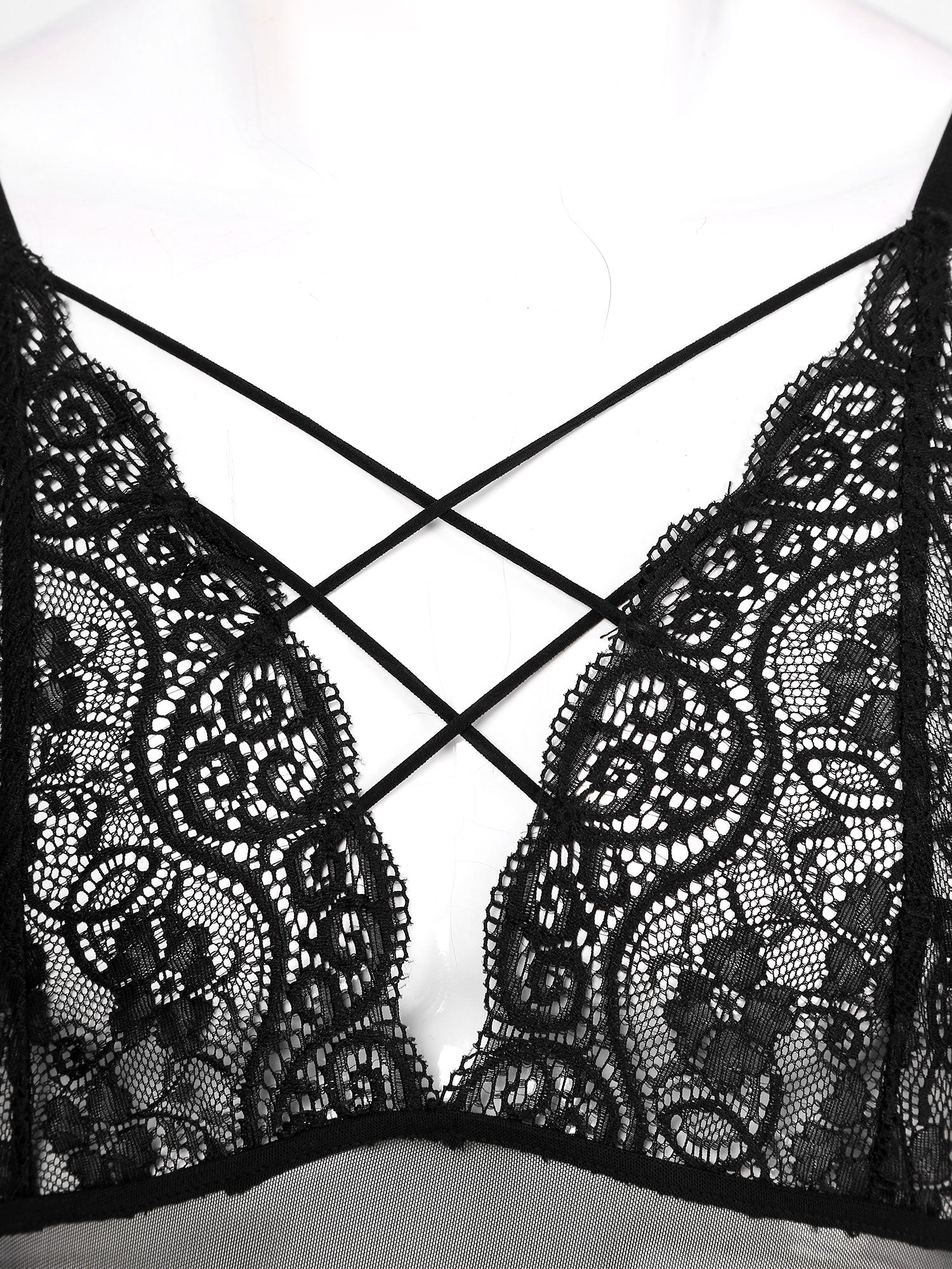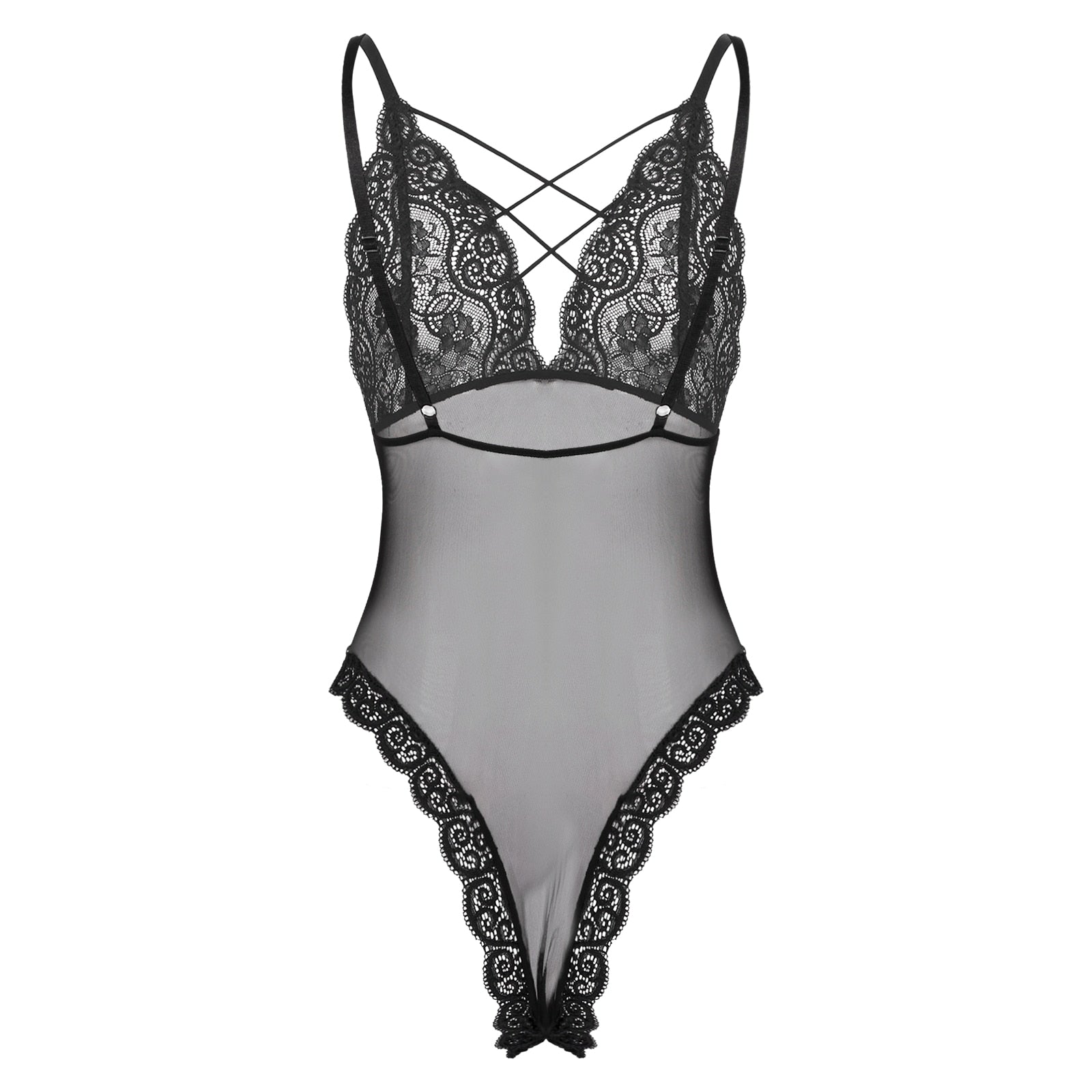 See-through mesh and lace patchwork design bodysuit, perfect show your charming curve.