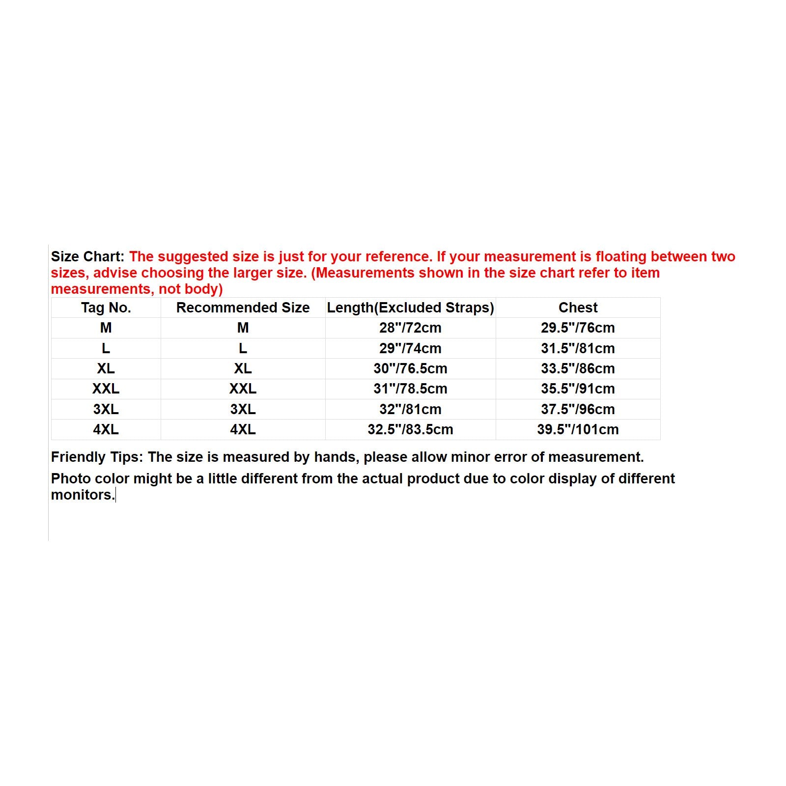 Size Chart: The suggested size is just for your reference. If your measurement is floating between two sizes, advise choosing the larger size. (Measurements shown in the size chart refer to item measurements, not body)