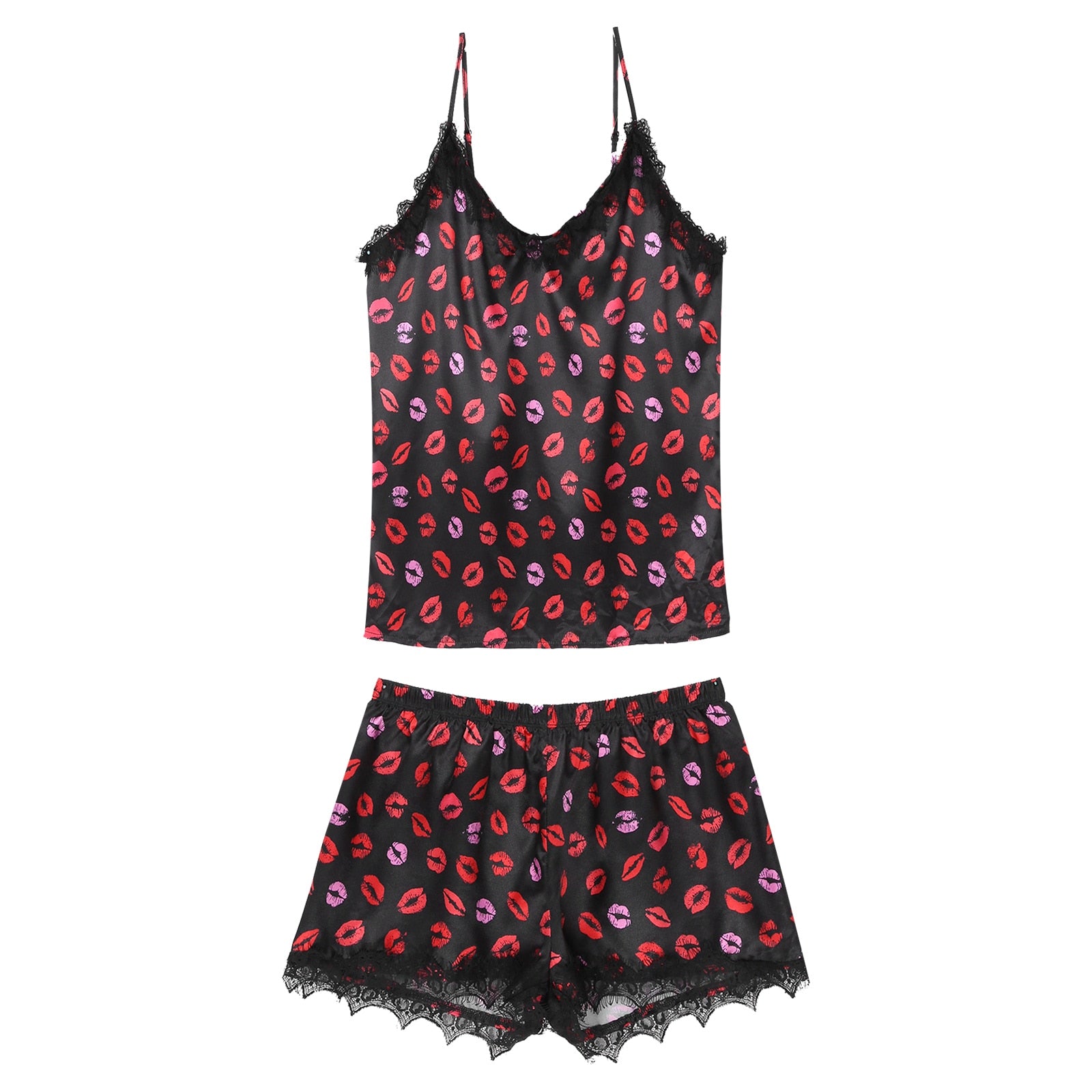 Featuring with lips printing, lace trimming, scalloped hem, makes you more attractive.