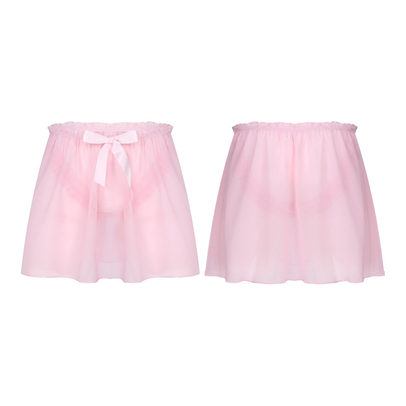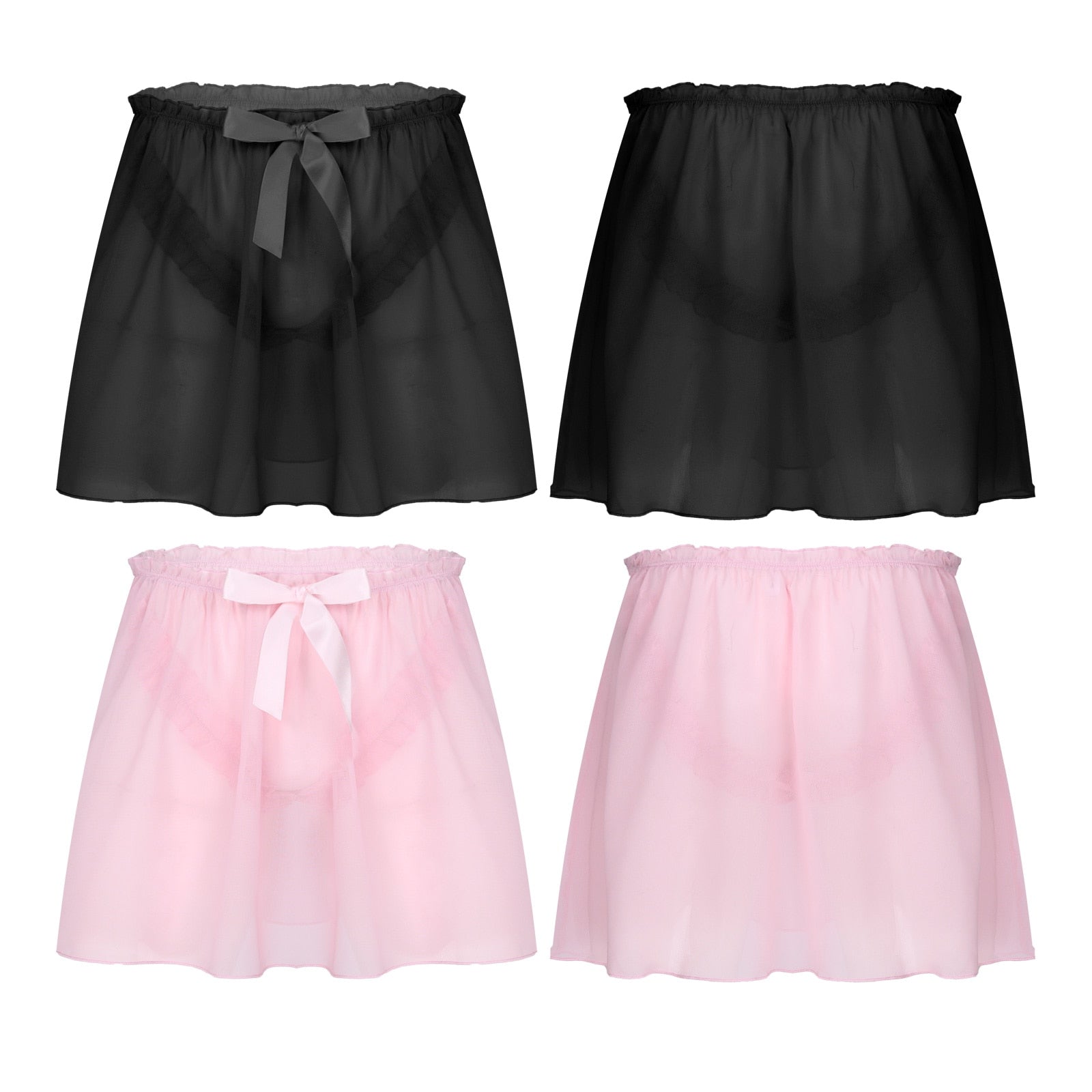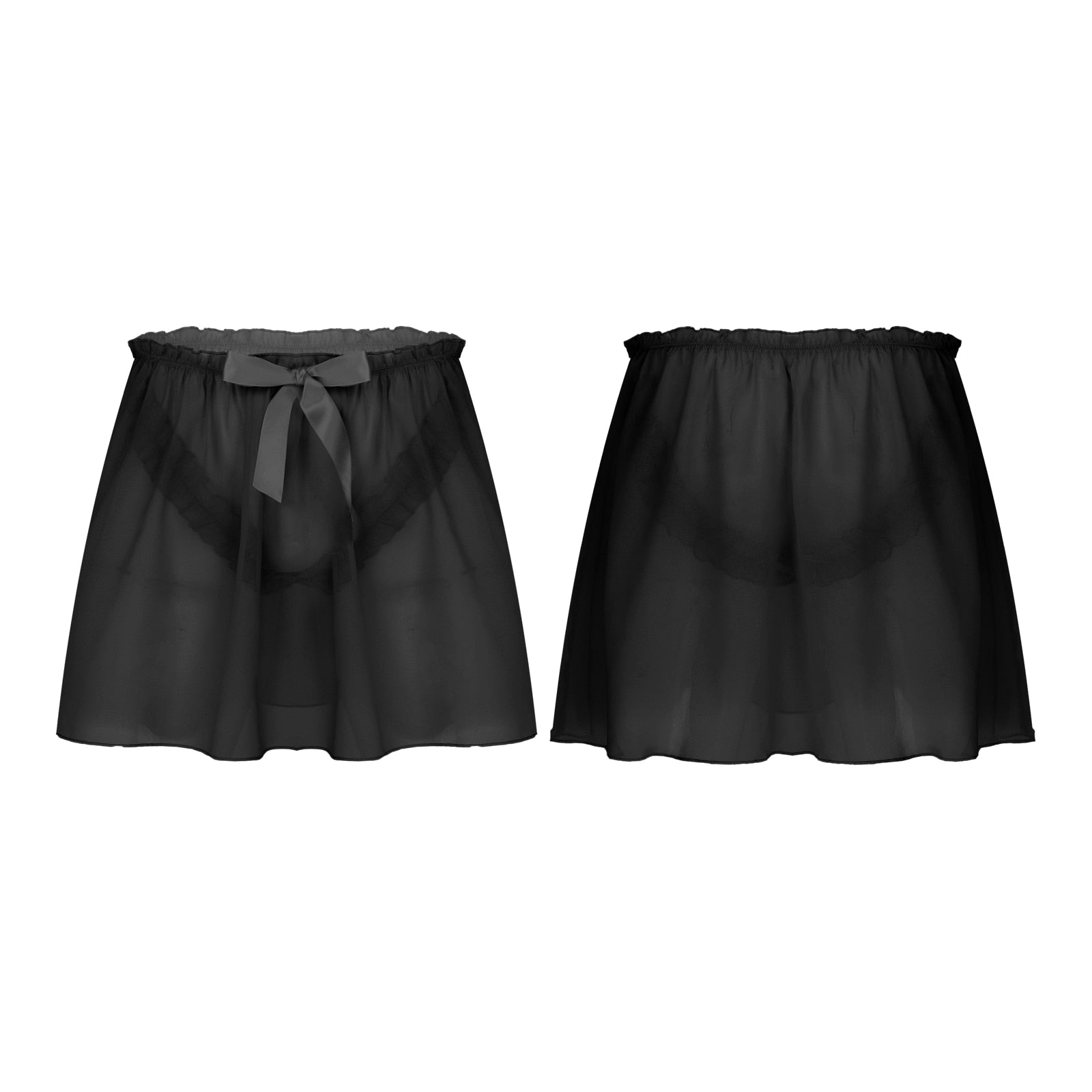 Mens Semi See-Through Chiffon Skirt Sissy Nightwear Crossdressing Sleepwear Frilly Elastic Waistband Skirts.