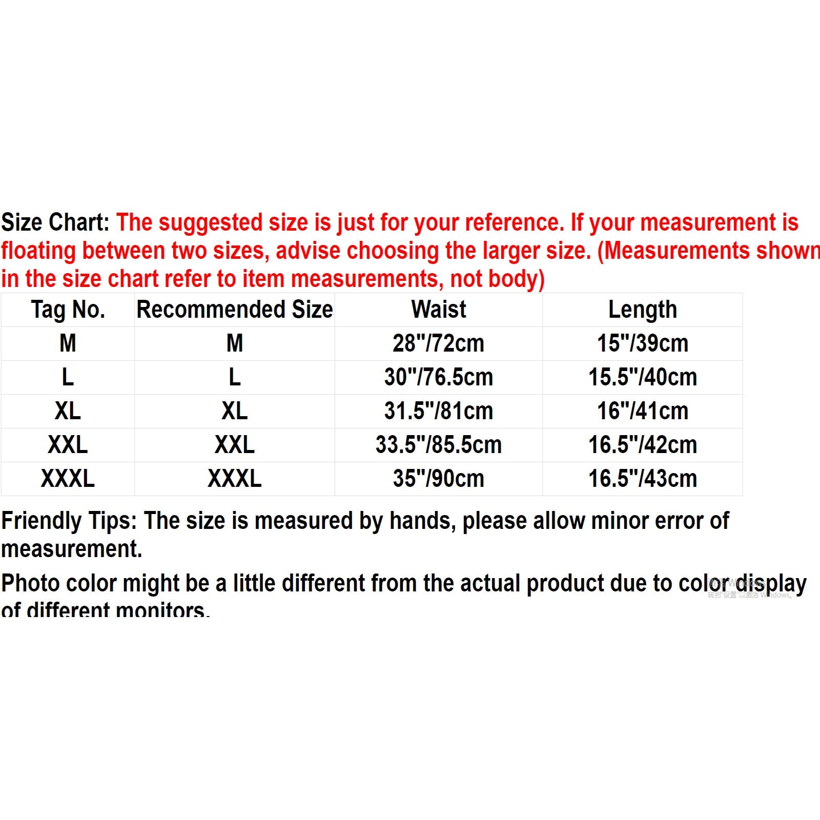 Friendly Tips: The size is measured by hands, please allow minor error of measurement.