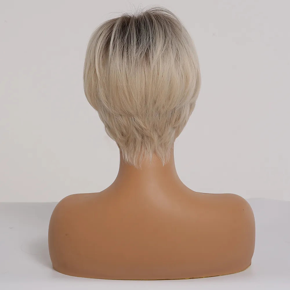 Ombre Ash Blonde Pixie Wig with Bangs - Crossdresser Cosplay Platinum Hair